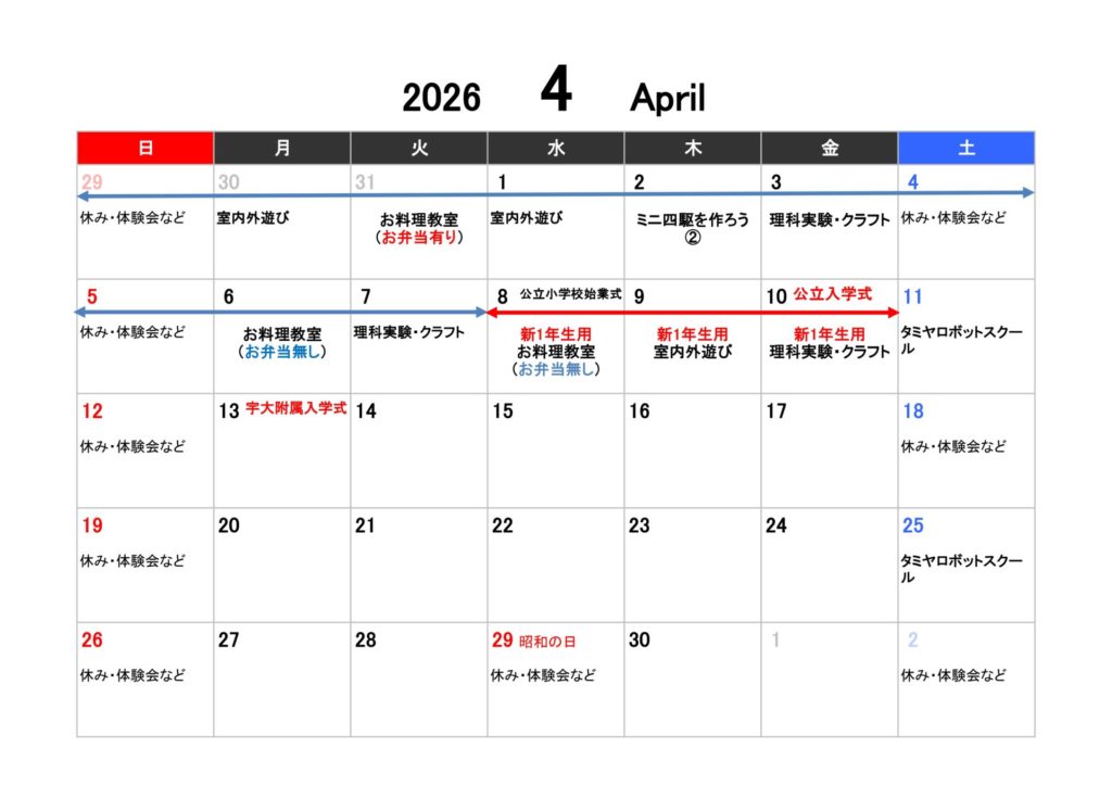 ※学童のイベントに関しては天候等によって内容が変わることがあります。