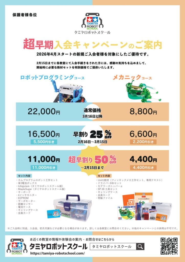 🚗タミヤロボットスクール早得キャンペーン